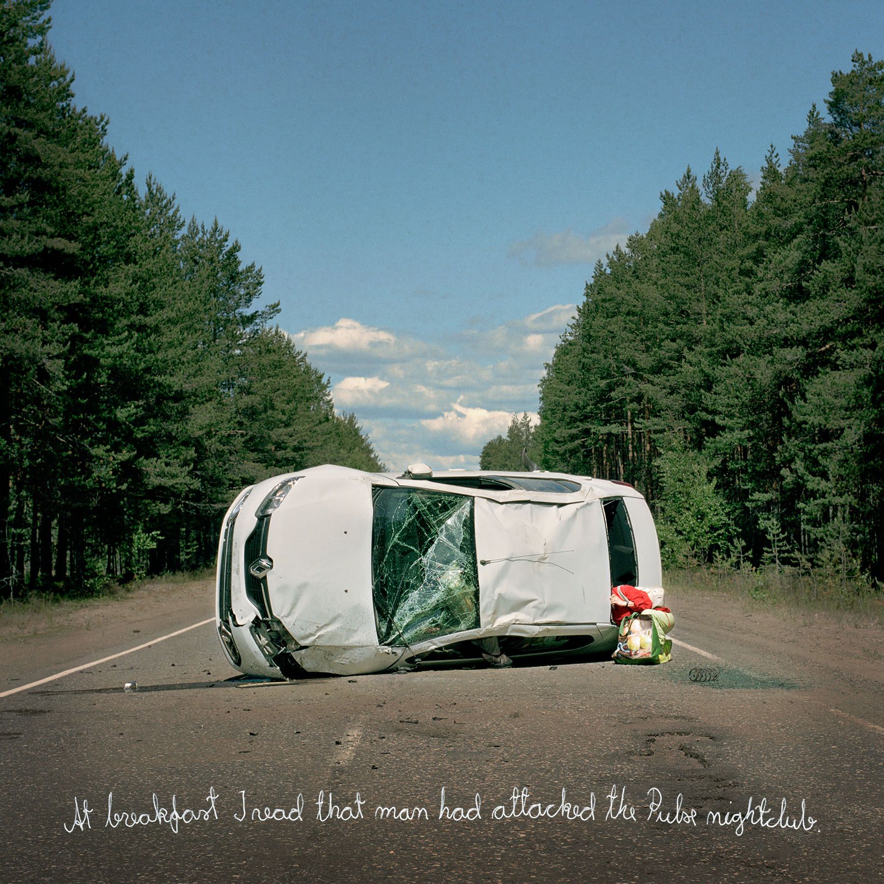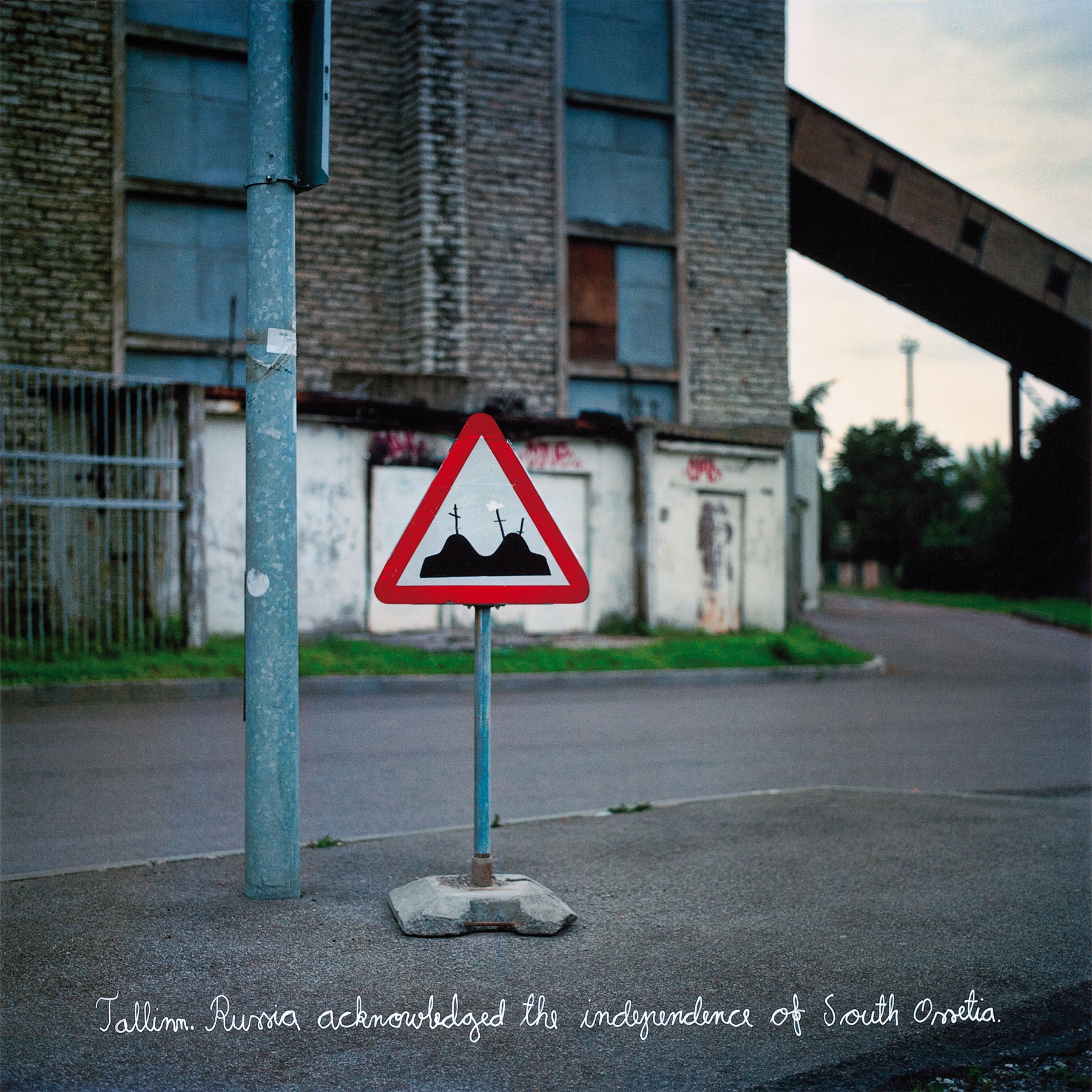 the road sign, fallen along the roadside,